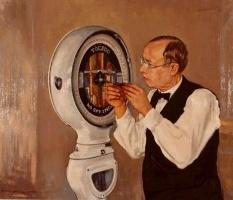 A Toledo Scale clerk with growing account books, ca. 1930s.