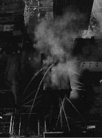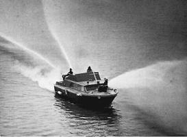 After attaching the hose to the engine, the machine was operated at a fire by the two long handlebars (known as brakes), ten men on each side, and when one bar went up, the other came down. It was very vigorous work to pull the bar down forty times a minute, so the firemen worked in shifts. The down stroke, as with a pump handle, did the work.