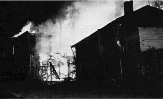 Shortly after Patrick H. Galloway joined the department as a torch boy, the burning of the Indiana House took place. It was a four story brick hotel that extended from Perry Street about half the block near Monroe Street. On the remainder of the block toward Monroe Street were frame stores. As Mr. Galloway recalled, Toledo, at this time, had the worst gang of thieves that he had ever seen in the 1800s. While the fire burned, these thieves began burglarizing, and the company of which Mr. Galloway was a member was called upon by the Chief Engineer to check the thieves at their work. The company made short work of them, driving them back and retrieving the goods they had stolen. In doing so, one of the firemen, James Burns of the fifth ward, was hit on the side of the head with a brick and suffered a broken jaw. The boarders of the hotel were robbed of their valuables, excepting those saved by the efforts of the firemen. Mr. Galloway stated in May 1900 that it was one of biggest fires in Toledo in the last century.