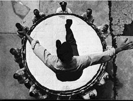In those early days, the only way to spread the alarm was to cry "fire" or ring the church bells of St. Francis de Sales on Cherry Street or old Trinity Church (which was a wooden structure) on Adams Street. The alarm would bring the volunteers, as well as many citizens who were willing to help. In one fire, soldiers from Detroit on their way to the Mexican War of 1847 were forced into service and aided in forming a bucket brigade to help extinguish the fire. Great confusion sometimes existed; on occasion, the firemen would pull their machine through the mud from an engine house on Adams Street to Monroe Street, only to learn that the fire was on Cherry Street.