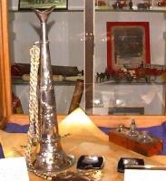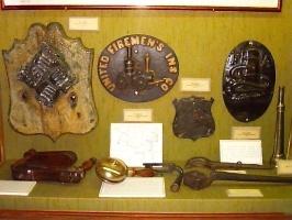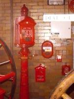 Hand rung alarms for the city ward fire marshal and a fireman's bed key for disassembling metal beds to remove them from burning buildings.