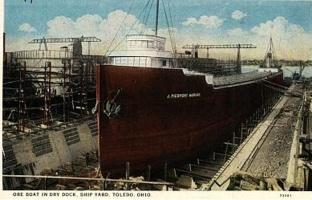 Ore boat in Dry Dock Ship Yard. Toledo, Ohio
